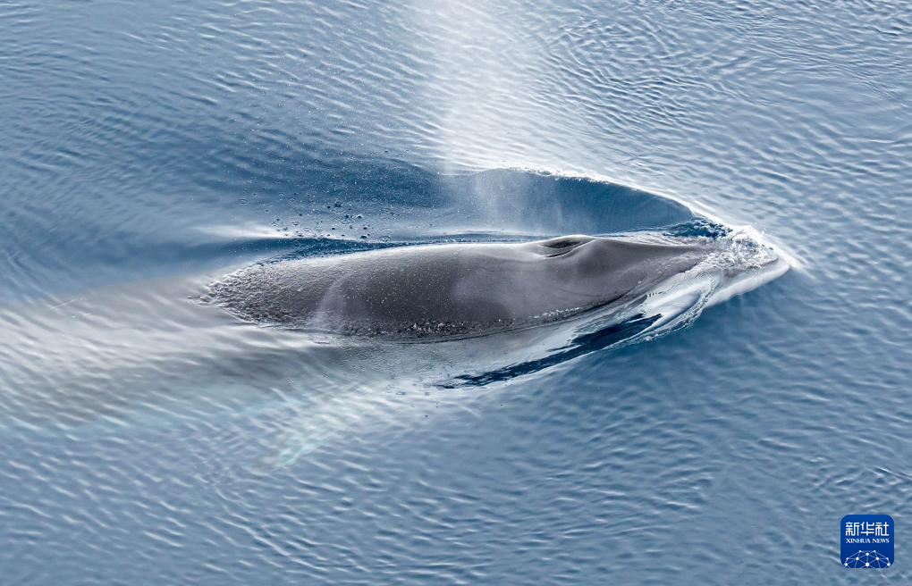 这是1月6日在阿蒙森海拍摄的小须鲸(无人机照片)。