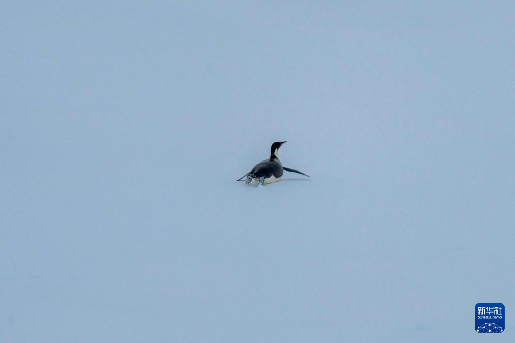 这是1月12日在阿蒙森海拍摄的帝企鹅。