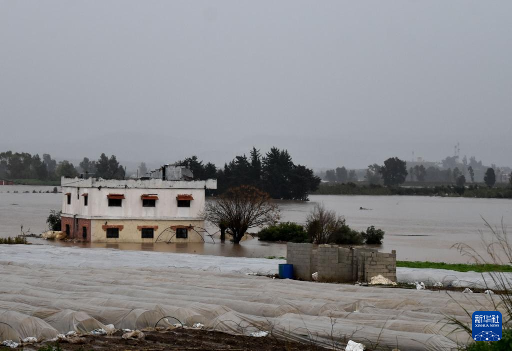 这是1月13日在叙利亚塔尔图斯省拍摄的洪水灾情。