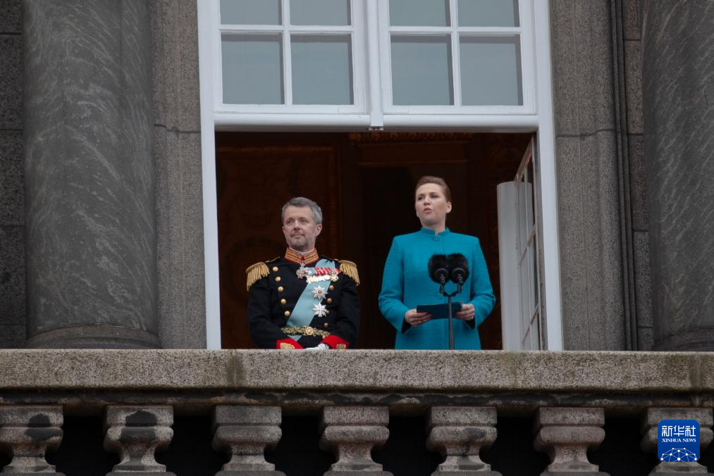 1月14日,丹麦首相弗雷泽里克森(右)在首都哥本哈根克里斯蒂安堡宫的阳台上宣布,腓特烈正式继位成为国王腓特烈十世。