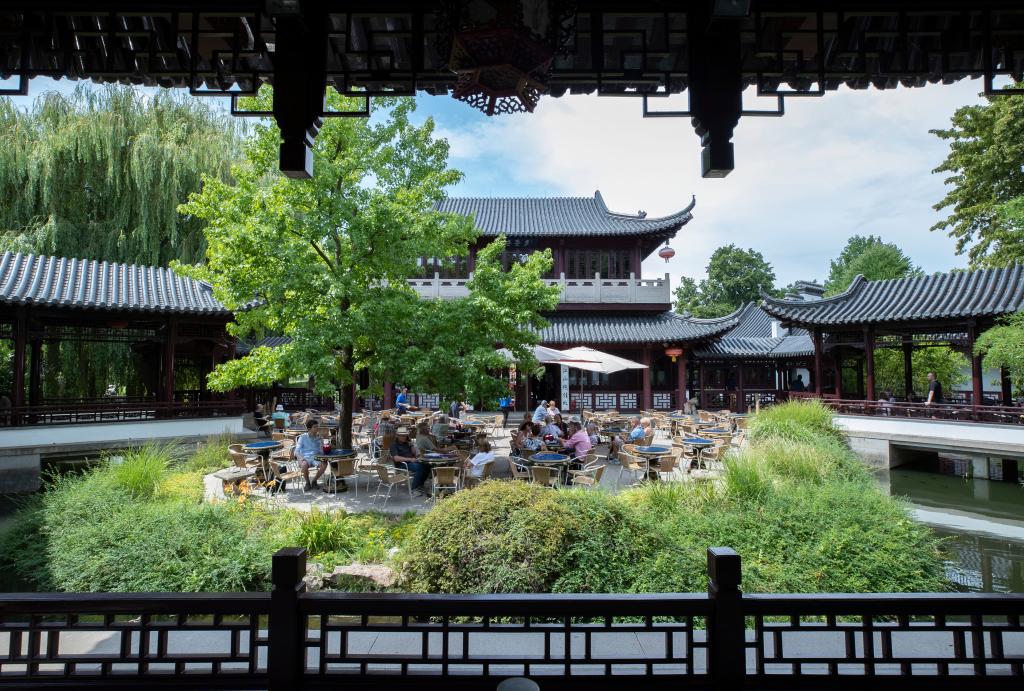 在德国曼海姆的路易森公园内,也有一座大型的中式园林“多景园”。借着曼海姆举办联邦园艺展的机会,我前往进行拍摄。多景园中有一座大茶楼,里面坐满了金发碧眼的本地客人,老板娘热情地招呼客人,添茶加水。