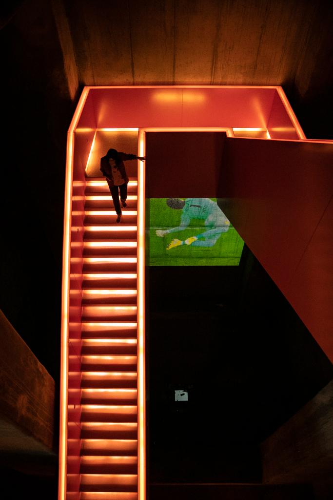 ↑2023年8月16日,一名游客在德国埃森参观游览关税同盟煤矿工业区内的鲁尔博物馆。