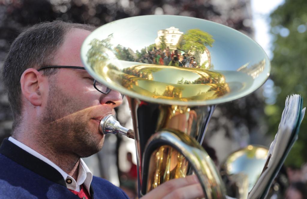↑2023年9月16日,乐手参加德国慕尼黑啤酒节开幕大游行。