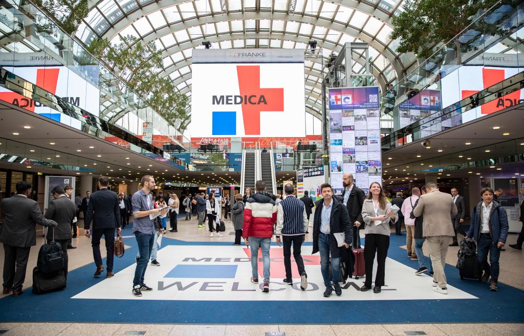 ↑2023年11月13日,人们在德国杜塞尔多夫国际医疗器械设备展上参观。