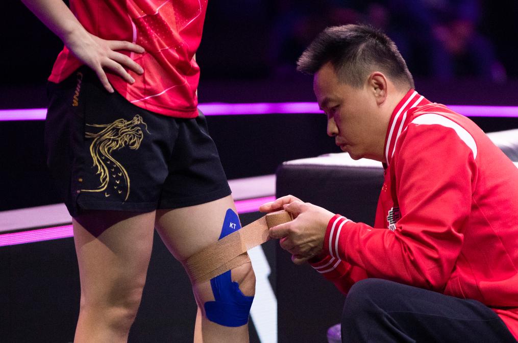 ↑2023年11月4日,王曼昱在比赛中受伤后接受治疗。