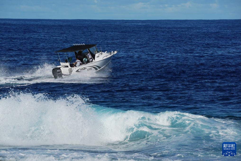 1月18日,在瑙鲁阿尼巴雷湾,一艘游艇在海面上行驶。