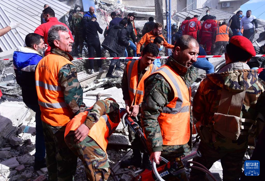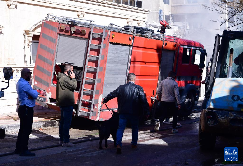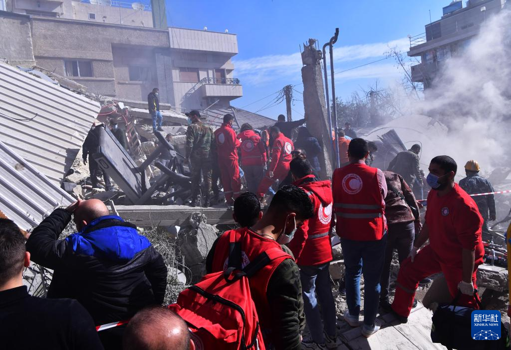 1月20日,叙利亚首都大马士革西部迈宰地区一栋多层住宅楼遭袭,救援人员来到现场救援。新华社发(阿马尔·萨法尔贾拉尼摄)
