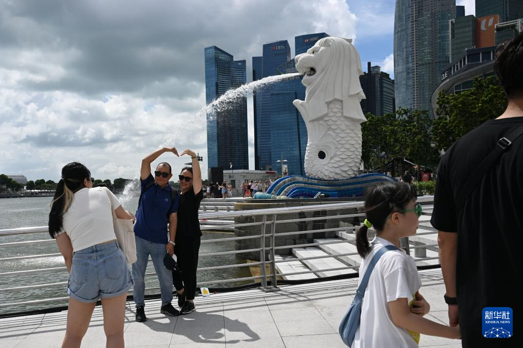 这是2023年12月21日,游客游览新加坡鱼尾狮公园。