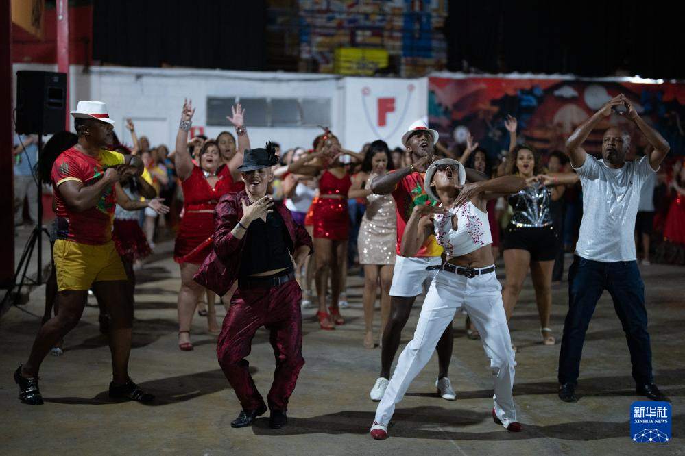 1月24日,在巴西贝洛奥里藏特“城市花园”舞校,表演者练习狂欢节舞蹈和歌曲。