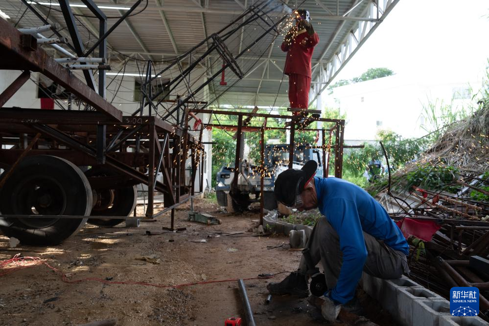 成立于1961年的“城市花园”舞校曾18次获得巴西贝洛奥里藏特市狂欢节表演冠军,今年舞校参加狂欢节演出的主题为“穿越智慧之路 孔雀遇见龙——巴西-中国文化之旅”。工人们正在贝洛奥里藏特市一个作坊里赶制一条舞动的钢架“中国龙”造型,为该桑巴舞校2月13日的狂欢节表演做准备。