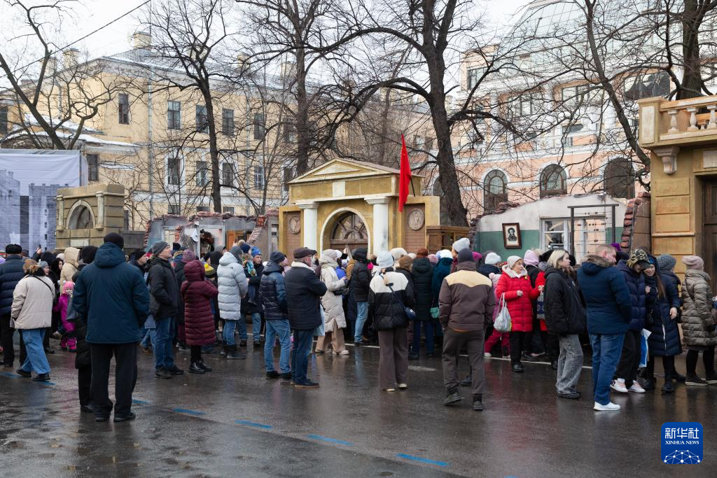 1月28日,在俄罗斯圣彼得堡,人们参观纪念列宁格勒保卫战胜利80周年互动展览。