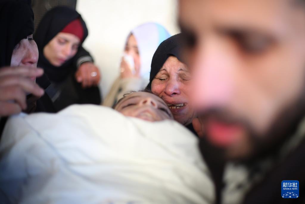 2月3日,在加沙地带南部城市拉法,巴勒斯坦人悼念死者。