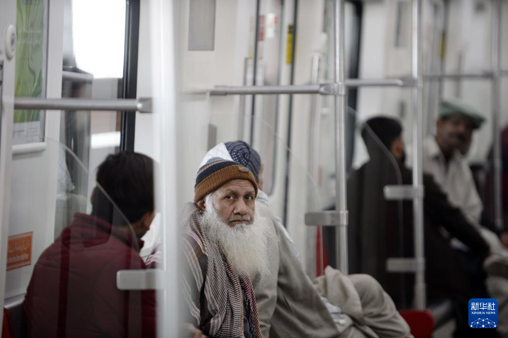 这是2月2日拍摄的巴基斯坦拉合尔轨道交通橙线地铁车厢内部。