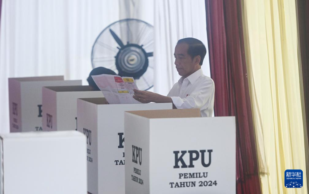 2月14日,在印度尼西亚雅加达,印尼总统佐科在一处投票站投票。