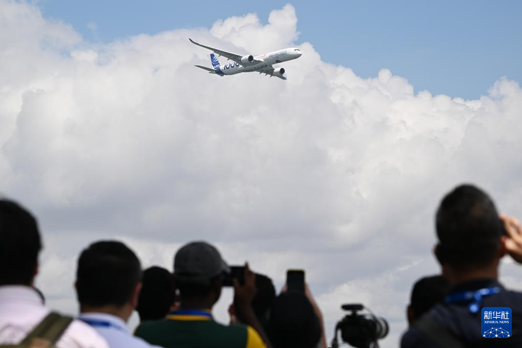 2月20日,一架空中客车A350客机在新加坡航展上做飞行表演。