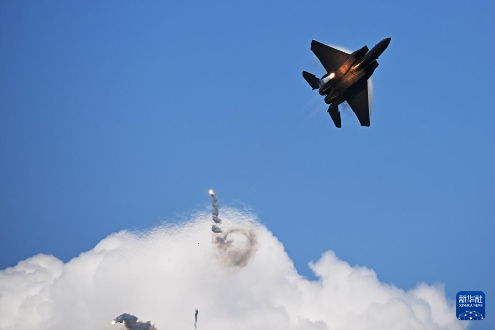 2月20日,一架新加坡空军F-15SG战机在新加坡航展上做飞行表演。