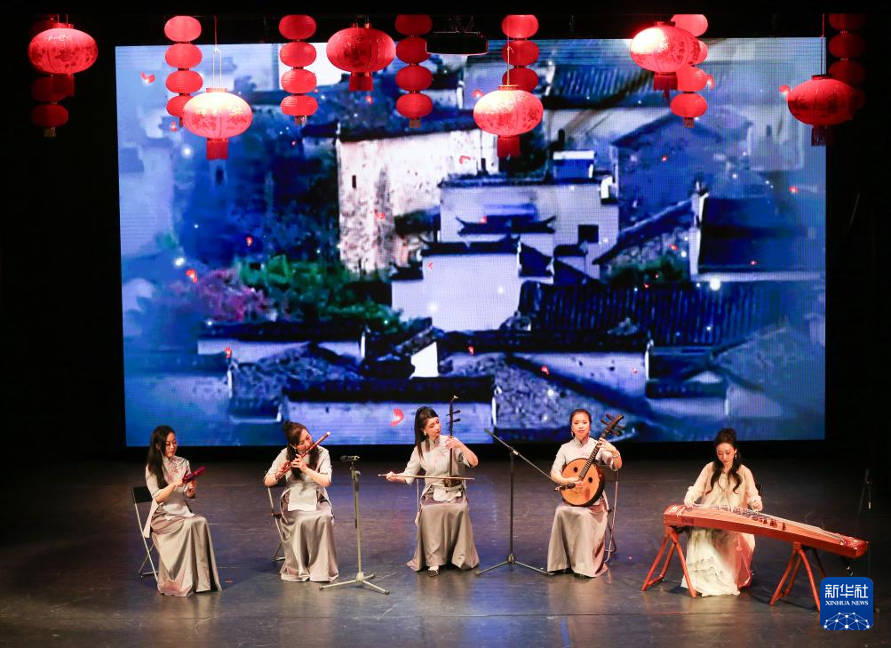 2月19日,表演者在意大利罗马举行的“四海同春”慰侨访演活动上演奏民乐《步步高》。