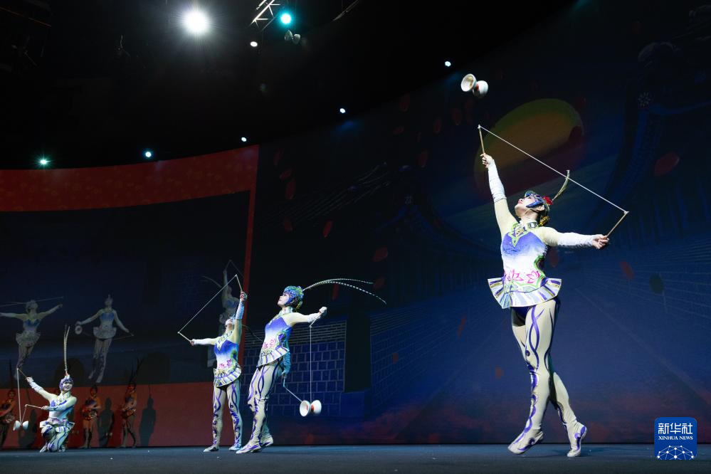 2月22日,演员在荷兰阿姆斯特丹举行的“四海同春”慰侨访演活动上表演杂技。新华社记者 孟鼎博 摄