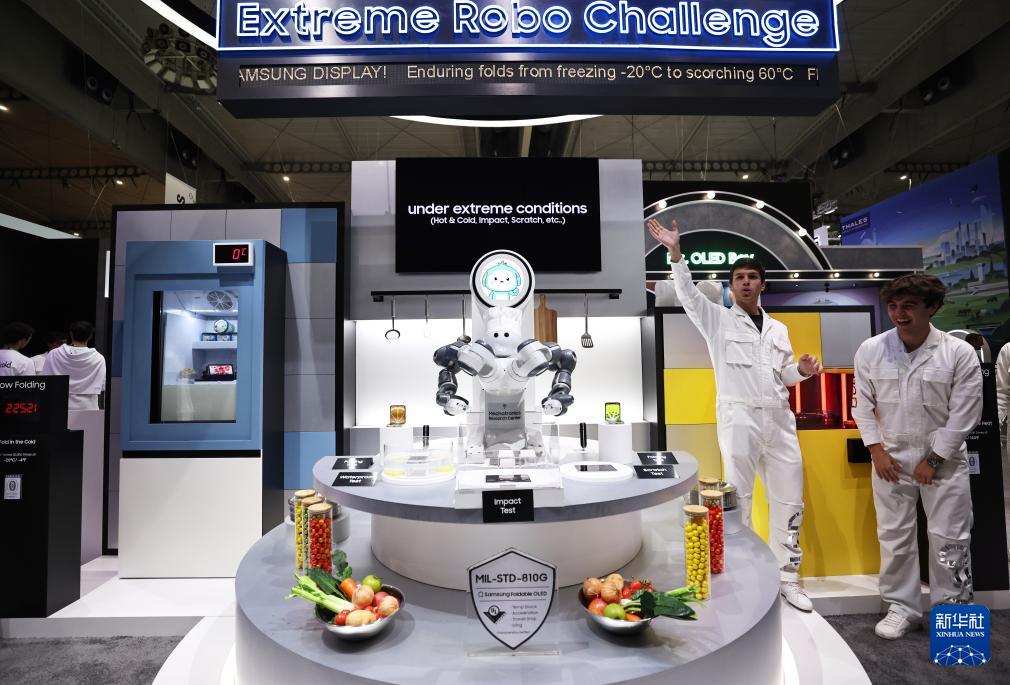 这是2月29日在西班牙巴塞罗那举行的2024年世界移动通信大会上拍摄的三星展台。
