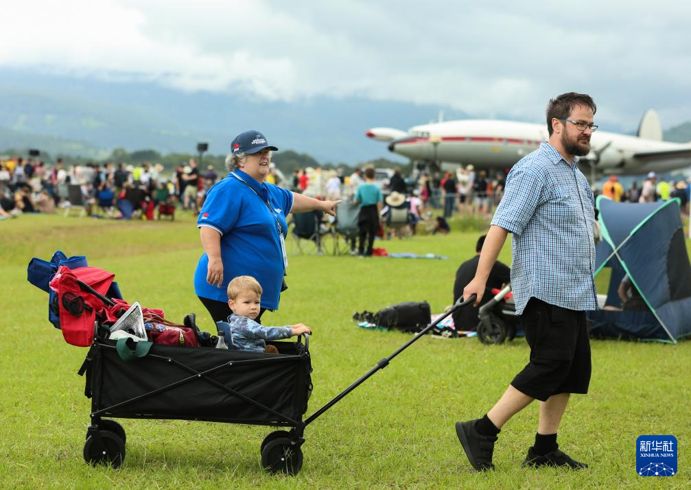 3月2日,参观者带着孩子观看澳大利亚谢尔哈伯航展。