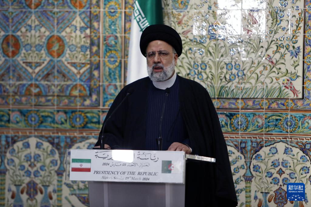 3月3日,在阿尔及利亚首都阿尔及尔,伊朗总统莱希出席联合记者会。