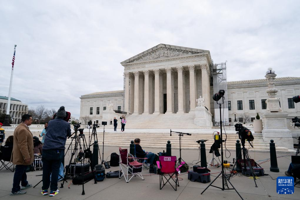 3月4日,媒体在美国华盛顿的美国联邦最高法院前报道。