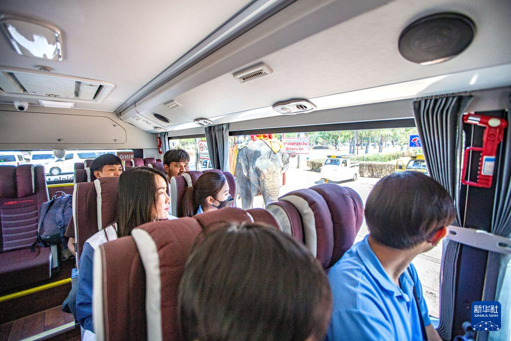 3月5日,在泰国大城府,乘客乘坐5G无人驾驶电动巴士。