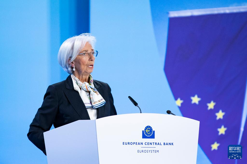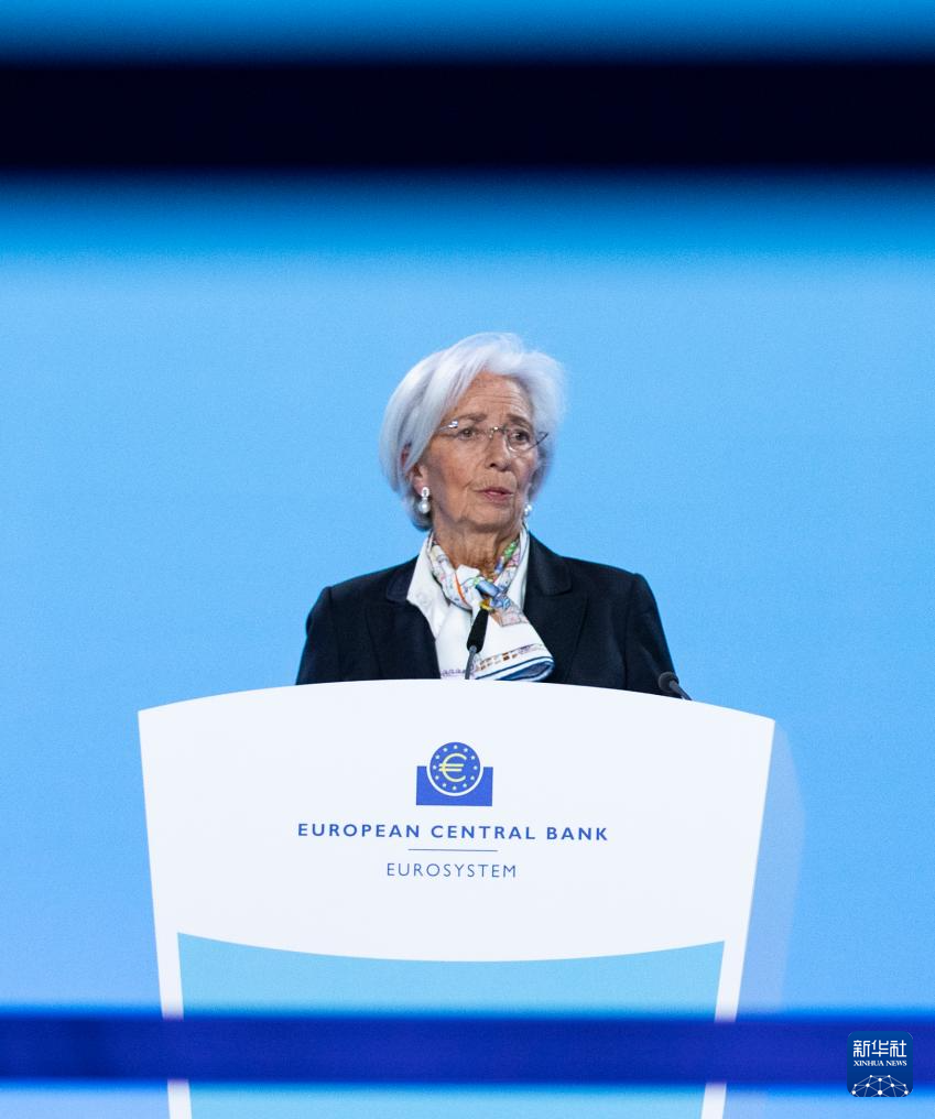3月7日,欧洲中央银行行长拉加德在德国法兰克福欧洲中央银行总部出席新闻发布会。