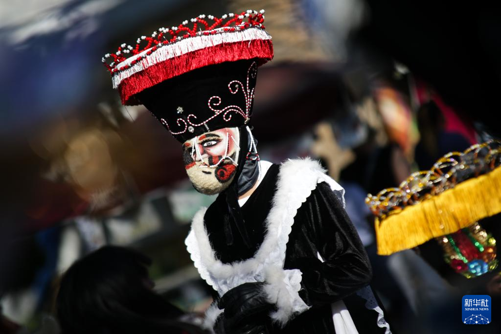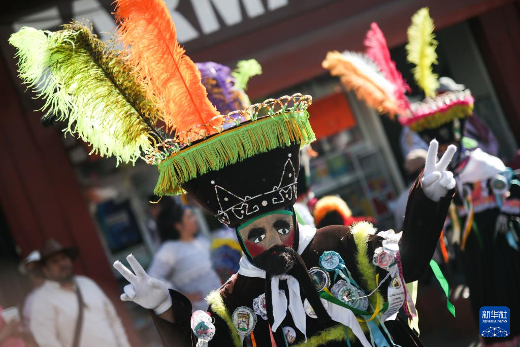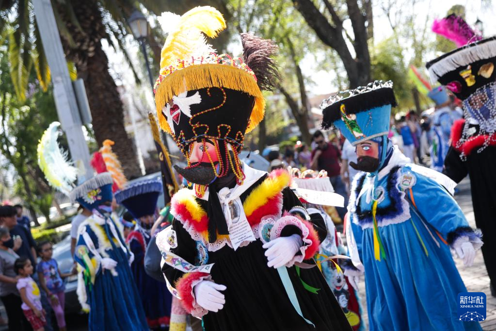 在墨西哥首都郊区小城霍奇米尔科,狂欢节游行有古老的传统。参与者穿着天鹅绒长袍、头戴面具和帽子,在街道上伴随音乐跳舞。