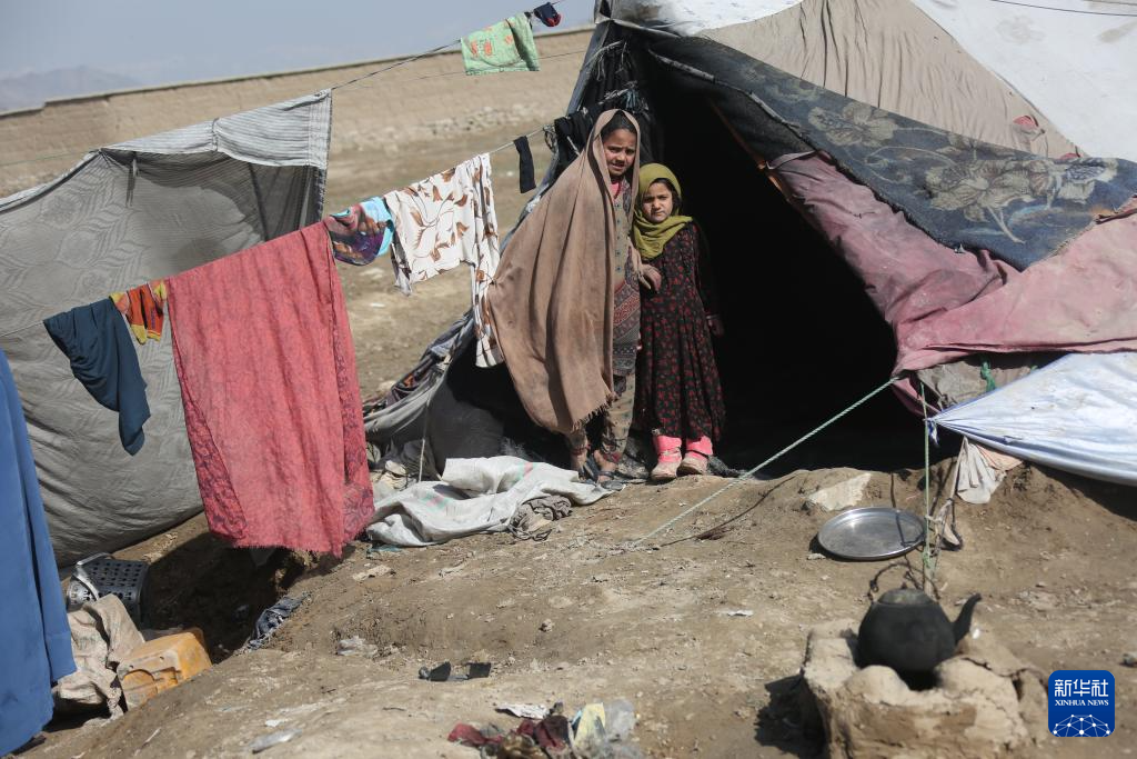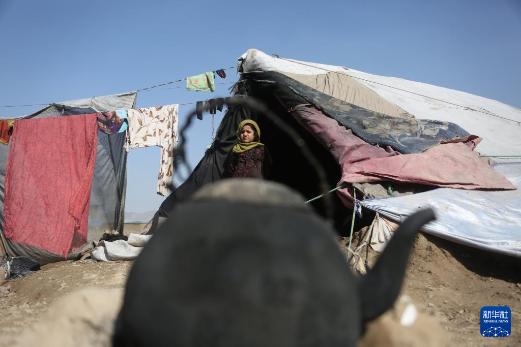 这是3月14日在阿富汗喀布尔拍摄的帐篷和小女孩。