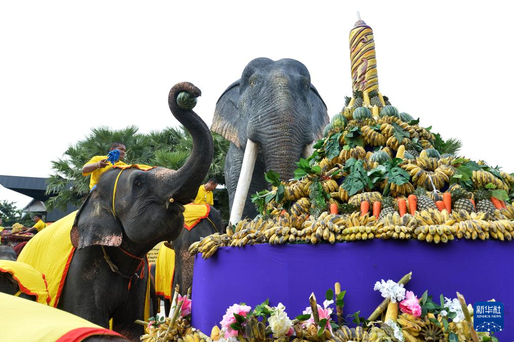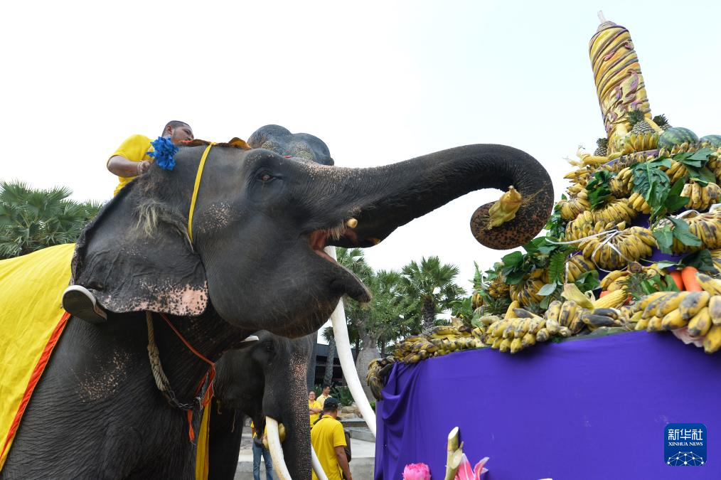 当日是泰国一年一度的大象日,芭堤雅东芭乐园在这一天为大象奉上了丰盛的水果自助餐。