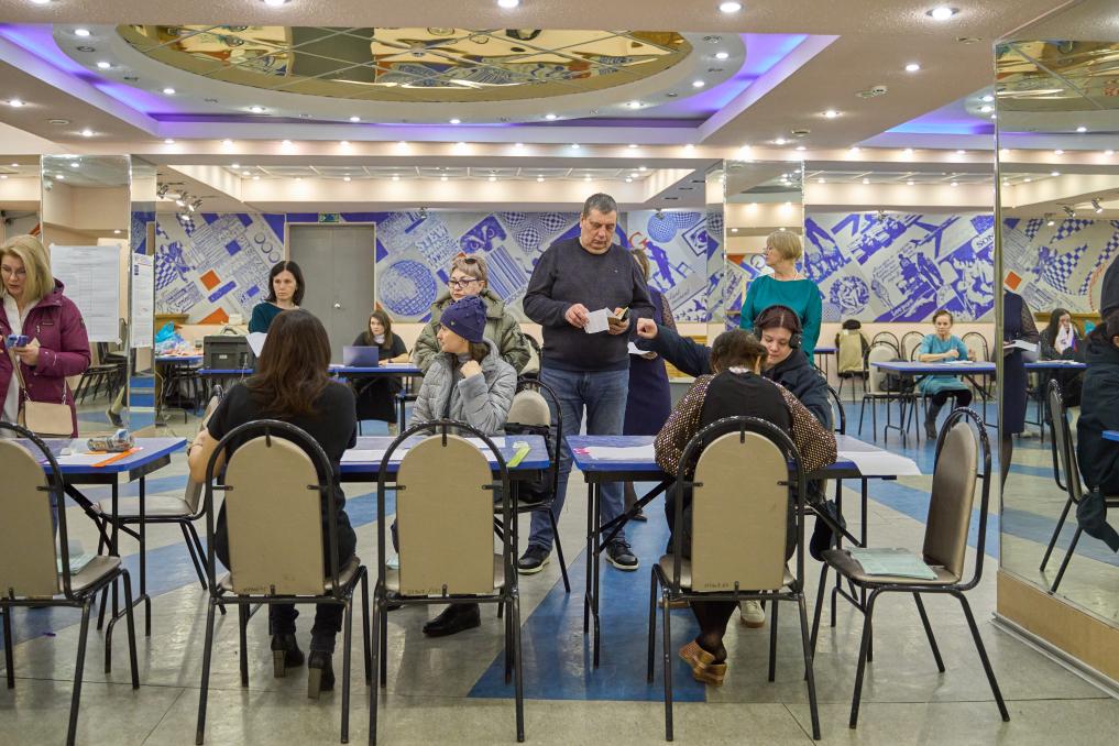 3月15日,当地居民在俄罗斯符拉迪沃斯托克排队登记参加总统选举投票。新华社发(郭飞洲摄)