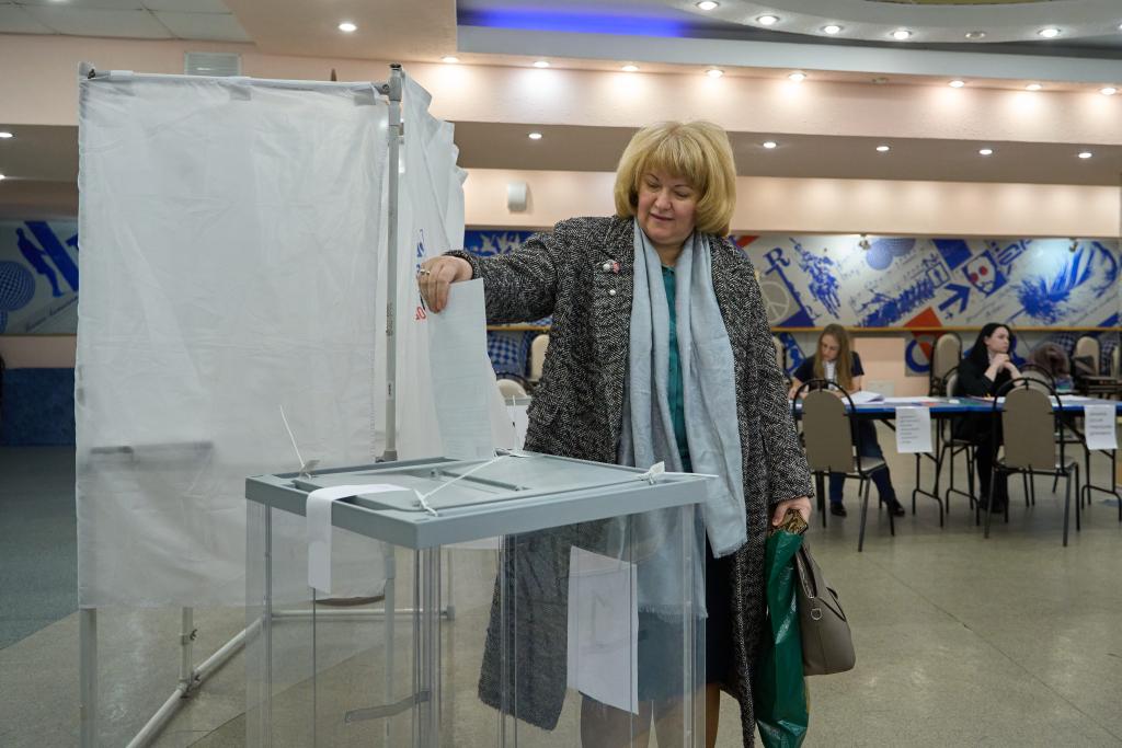 3月15日,当地居民在俄罗斯符拉迪沃斯托克参加总统选举投票。新华社发(郭飞洲摄)