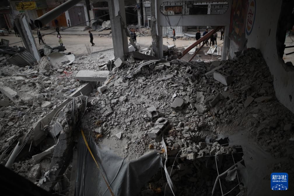 这是3月16日在加沙地带中部布赖杰难民营拍摄的以军轰炸后的场景。