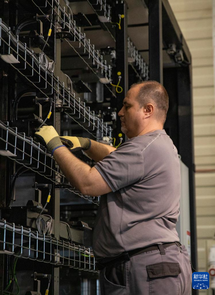 3月18日,在匈牙利比奥托尔巴吉,工人在蔚来能源欧洲工厂工作。