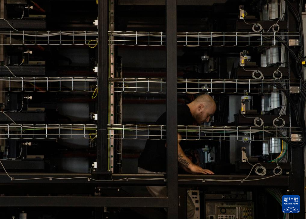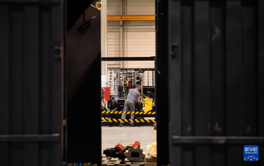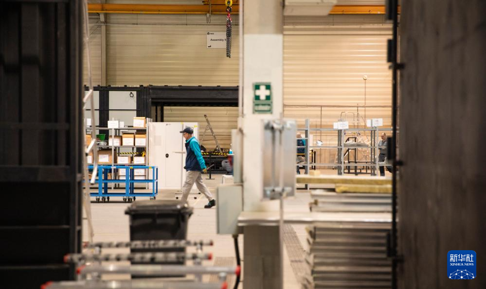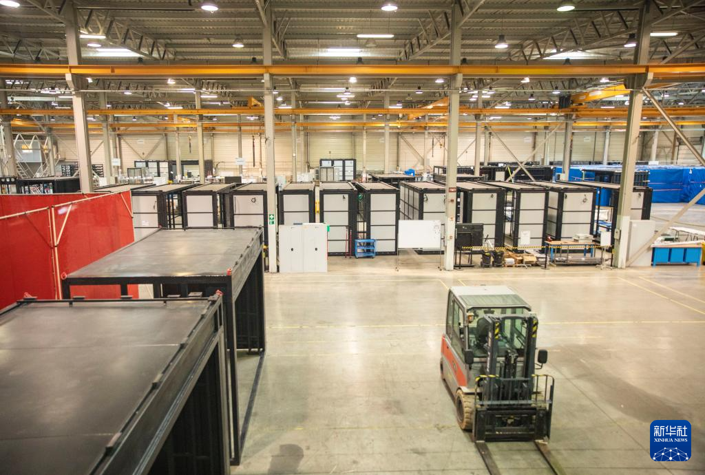 这是3月18日在匈牙利比奥托尔巴吉拍摄的蔚来能源欧洲工厂内部。