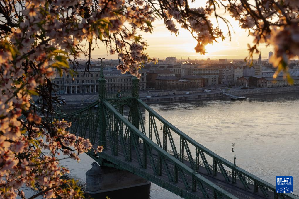 布达佩斯春日掠影 -这是3月17日在匈牙利布达佩斯拍摄的鲜花掩映的自由桥。'...