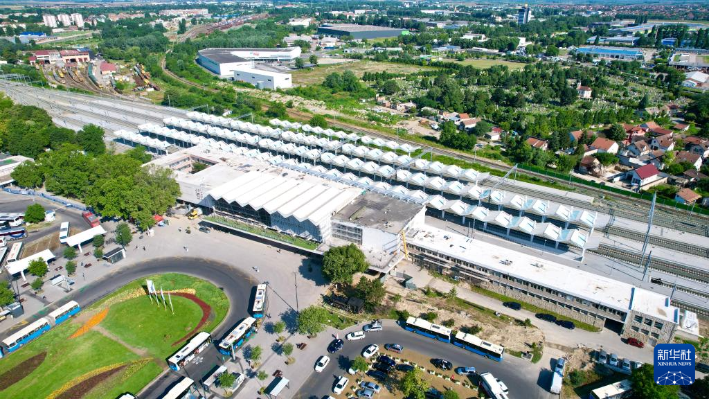 这是2023年6月29日拍摄的匈塞铁路塞尔维亚境内贝诺段诺维萨德站鸟瞰景象(无人机照片)。