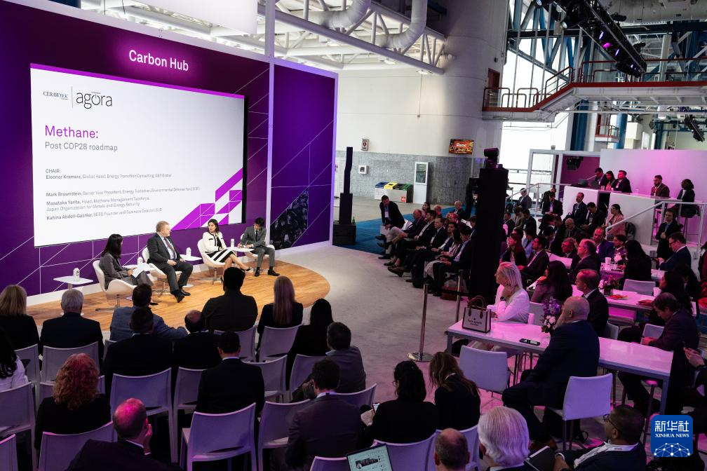 3月18日,与会者在美国休斯敦举行的能源界高端会议“剑桥能源周”的创新集市上参与讨论。