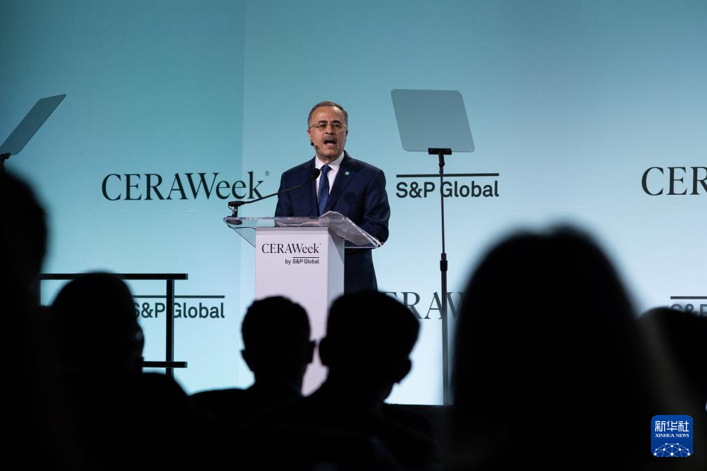 3月18日,沙特阿拉伯国家石油公司总裁兼首席执行官阿明·纳赛尔在美国休斯敦举行的能源界高端会议“剑桥能源周”上分享观点。