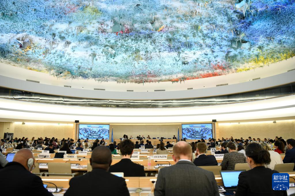 这是3月20日在瑞士日内瓦拍摄的联合国人权理事会第55届会议现场。
