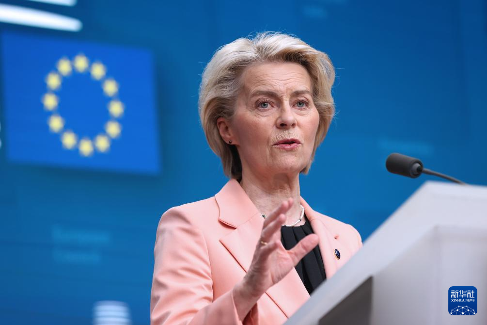 3月21日,在比利时布鲁塞尔,欧盟委员会主席冯德莱恩在欧盟峰会期间出席新闻发布会。