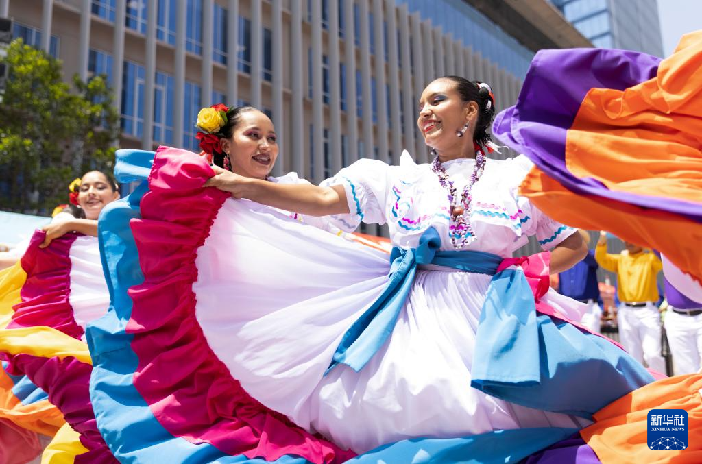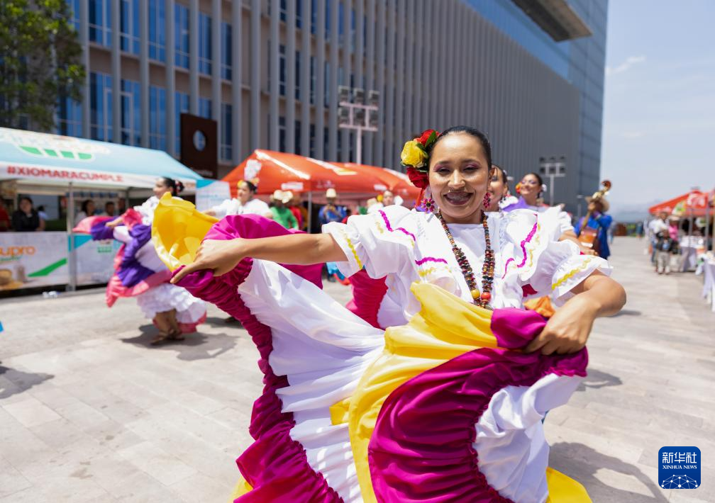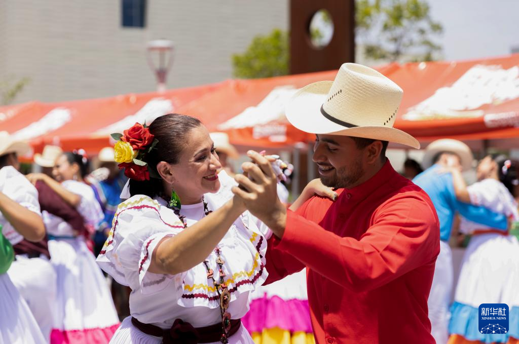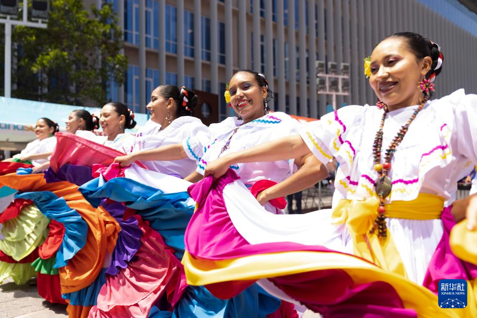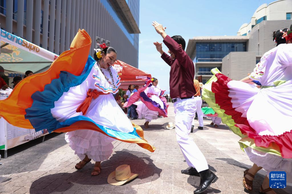 当日,在洪都拉斯首都特古西加尔巴的一个集市上,演员们载歌载舞,表演洪都拉斯民间舞蹈。