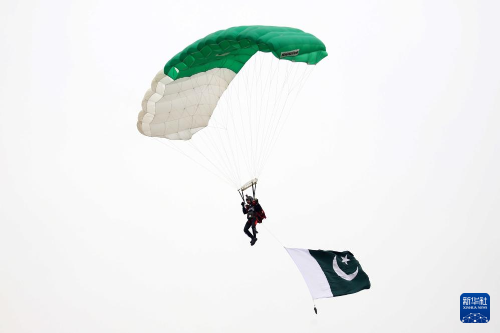 3月23日,巴基斯坦伞兵在伊斯兰堡的阅兵式上展示跳伞技术。