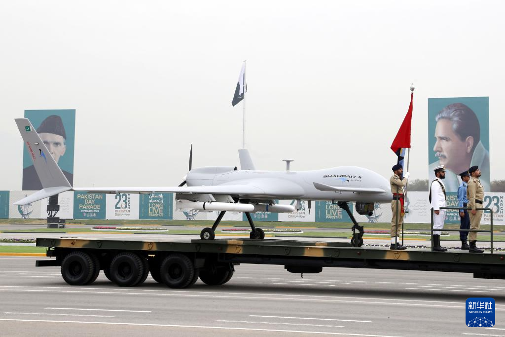 这是3月23日在巴基斯坦伊斯兰堡拍摄的参加阅兵式的无人机。