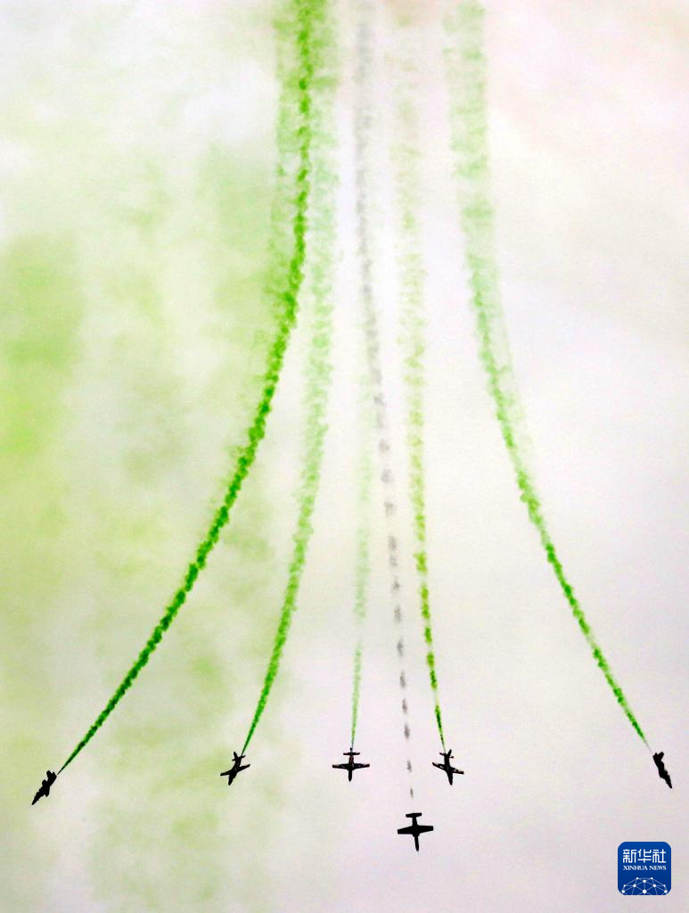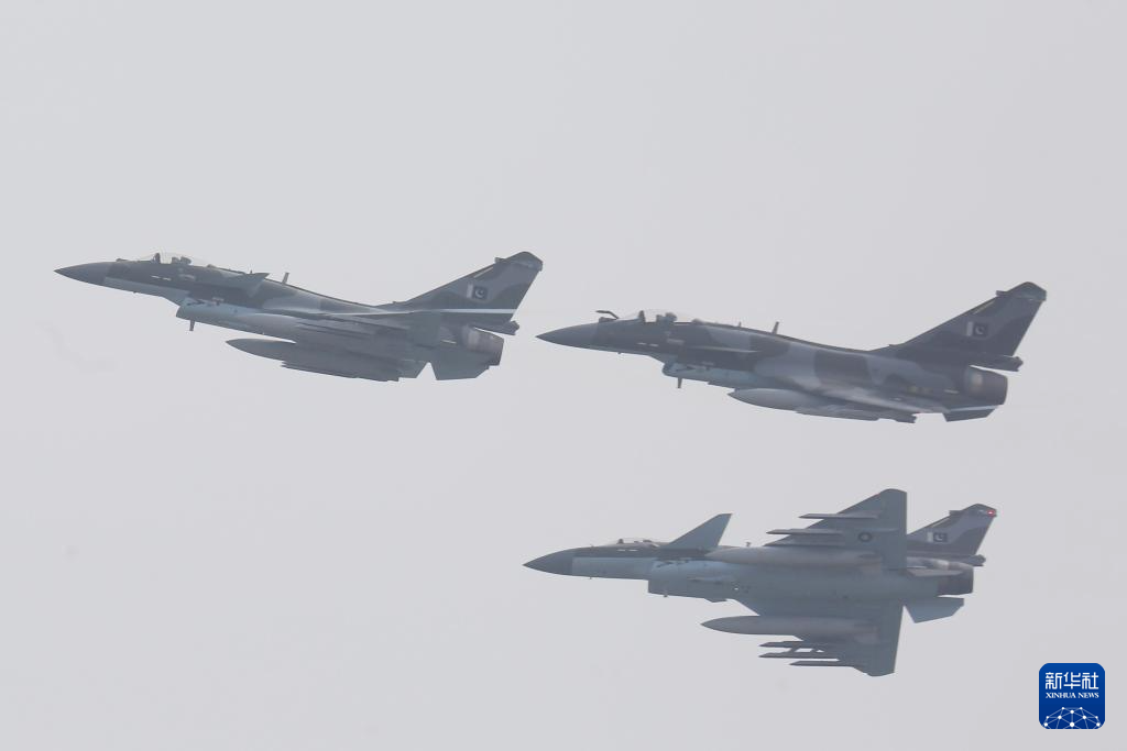 3月23日,军机在巴基斯坦伊斯兰堡参加阅兵式的空中表演。