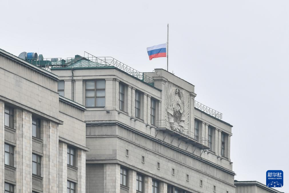 3月24日,在俄罗斯莫斯科,俄国家杜马大楼降半旗。