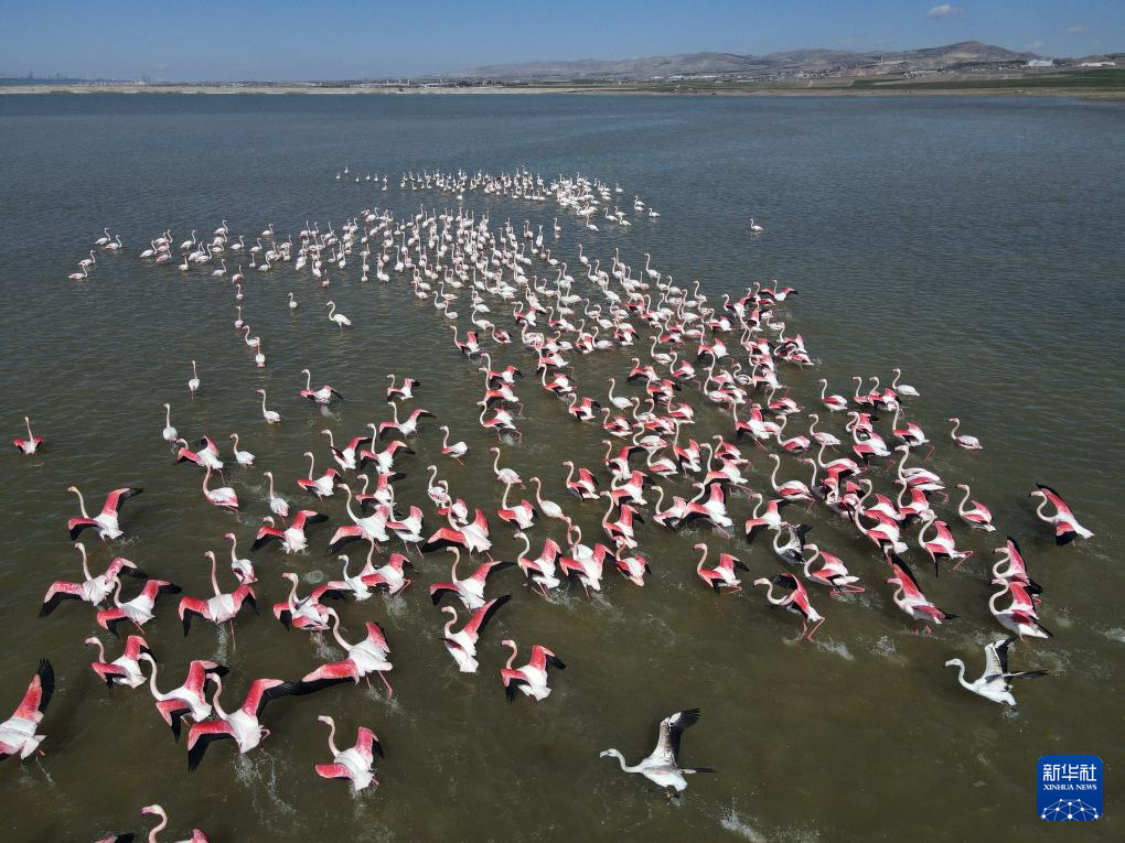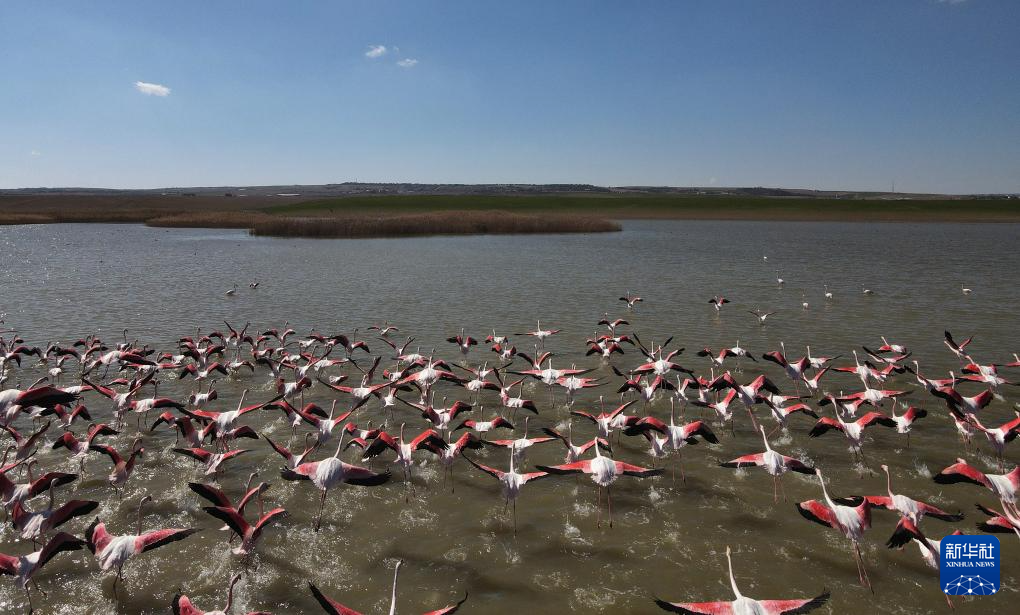 土耳其安卡拉:火烈鸟群-这是3月24日在土耳其首都安卡拉拍摄的火烈鸟群。'...