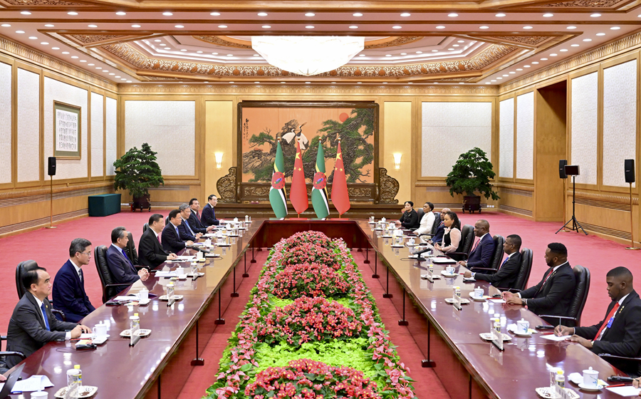 3月25日下午,国家主席习近平在北京人民大会堂会见来华进行正式访问的多米尼克总理斯凯里特。新华社记者 翟健岚 摄