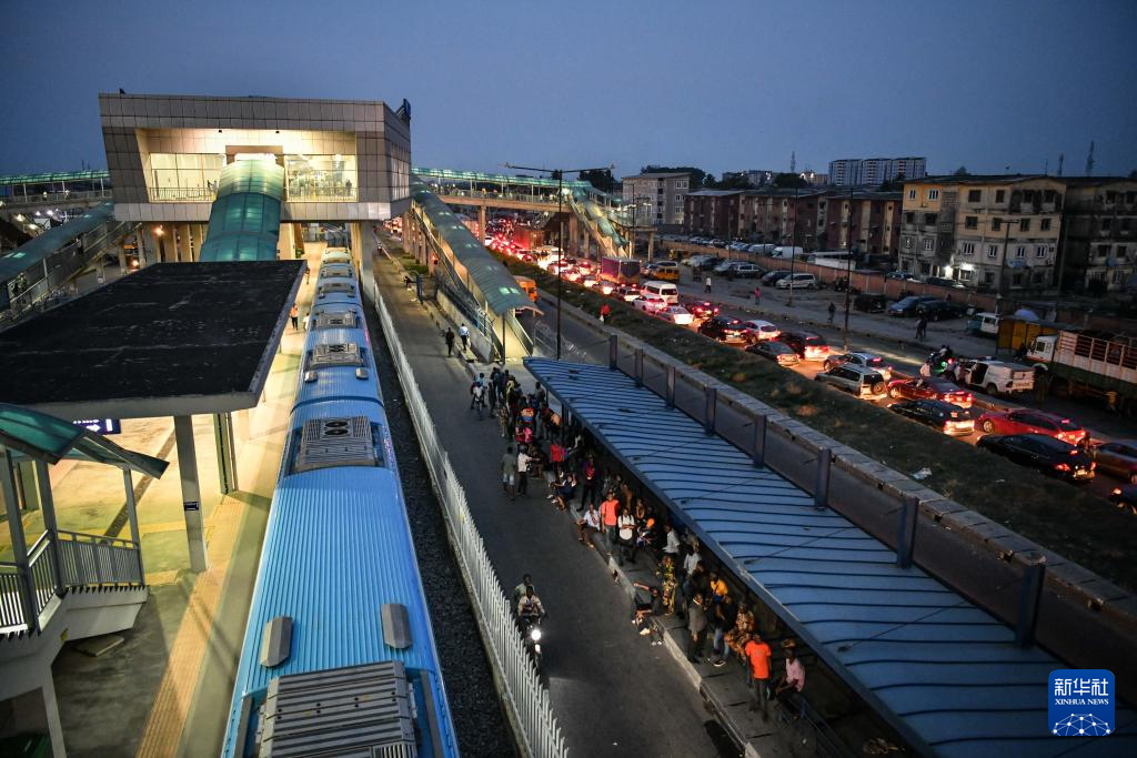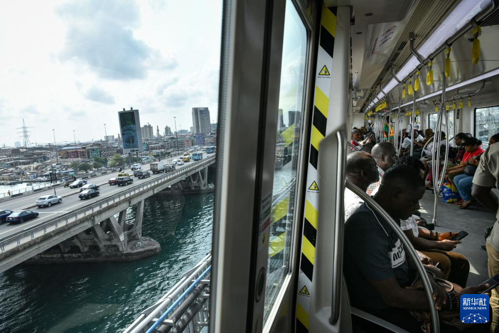 2月28日,在尼日利亚拉各斯,人们乘坐轻轨蓝线列车。